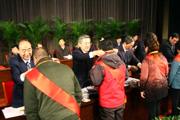 会前,省领导亲切接见了获奖志愿者代表并合影。会上,与会领导为受表彰的志愿者代表颁奖。黄河岸边坚持助学育才志愿服务30年的党员志愿者,范县人事局党组书记、范县人才志愿者协会会长孟贵臣;双目失明,却用自己所学的技能,力所能及回报社会的焦作市残疾人爱心港湾志愿者服务队唐丽;6年如一日义务讲解,传承华夏文明的河南博物院志愿者王慧芳;积极投身“三下乡”、广州亚运会志愿服务,担任深圳大运会火炬手的大学生志愿者张涵分别在大会上作了典型发言,他们朴实平凡,却感人至深的事迹,深深的感染了在场每一个人。河南省志愿者联合会还在会上向全省广大志愿者发出了《让志愿服务在中原经济区建设中闪光》的倡议,倡议全省志愿者一起来行动,深入基层、深入群众,传播先进文化,倡树文明新风,弘扬尊老爱幼、互帮互助、平等和睦、勤俭节约的传统美德,引领精神文明建设,传递中原文明之风,让中原经济区尽显文明之美。一起来行动,普及志愿服务理念,带动公众“争做志愿者、创造新生活”,踊跃参与助老爱老、关爱行动、扶贫帮困、文明交通等社会公益活动,让中原经济区尽显和谐之美。一起来行动,从自身做起,从小事做起,倡导绿色、低碳发展理念,积极投身保护母亲河、植树造林等生态环保行动,让中原经济区尽显生态之美。一起来行动,牢记铮铮誓言,尽己所能,不计报酬,服务社会发展之实,服务民生需求之实,用志愿者朴实无华的务实形象,让中原经济区尽显务实之美。