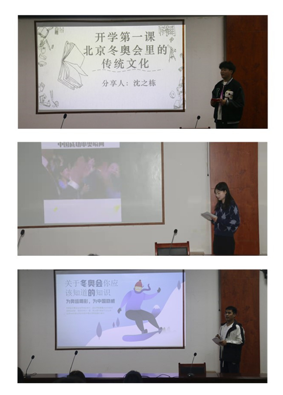 讲座过程中,学生代表也从“北京冬奥会里的中华传统文化”、“冬奥梦与中国梦的历史交汇”、“关于冬奥会你应该知道的知识”等角度分享了自己的冬奥感触,同学们纷纷表示刘校长的课程潜移默化、声情并茂、受益匪浅,一定要为祖国的发展、学校的进步、个人的成长积极学习,不负韶华,只争朝夕。