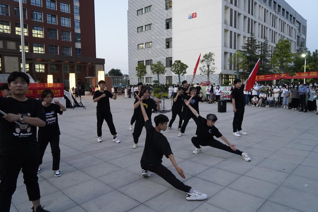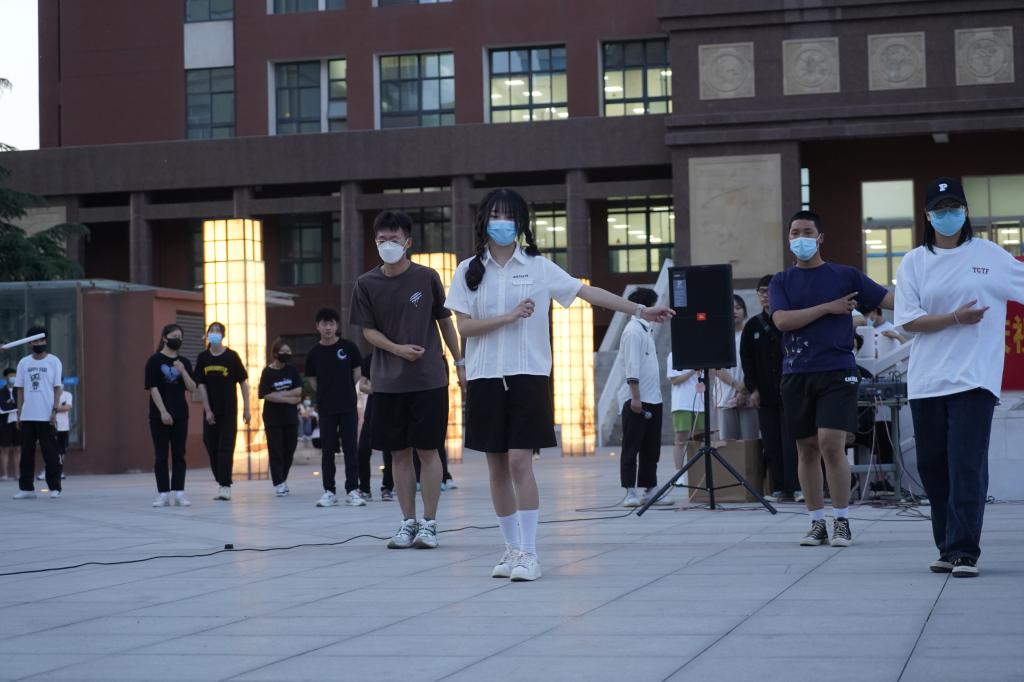 当前,郑州市疫情防控严峻复杂,为有效阻断疫情传播,确保校园平安,确保同学们的生命安全和身体健康。根据学校党委要求,学校实行更为严格的闭环管理。在学校封控管理期间,为了丰富校园文化生活,校领导亲自安排部署学生课余文化活动,并和同学们一起参与,共同抗击疫情。为纪念共青团成立100周年暨“五四”运动103周年,2022年5月4日晚7点,校团委在龙湖校区红旗广场举办了“我们在一起 不一样的青春 庆祝建团100周年‘五四’特别节目”。校党委书记刘合行、党委副书记、校长王国福、党委委员、副校长刘卫红等出席现场并给同学们带来了节日的问候与鼓励,在校值班值守的部门负责同志、党员干部、辅导员老师们参加了此次活动。