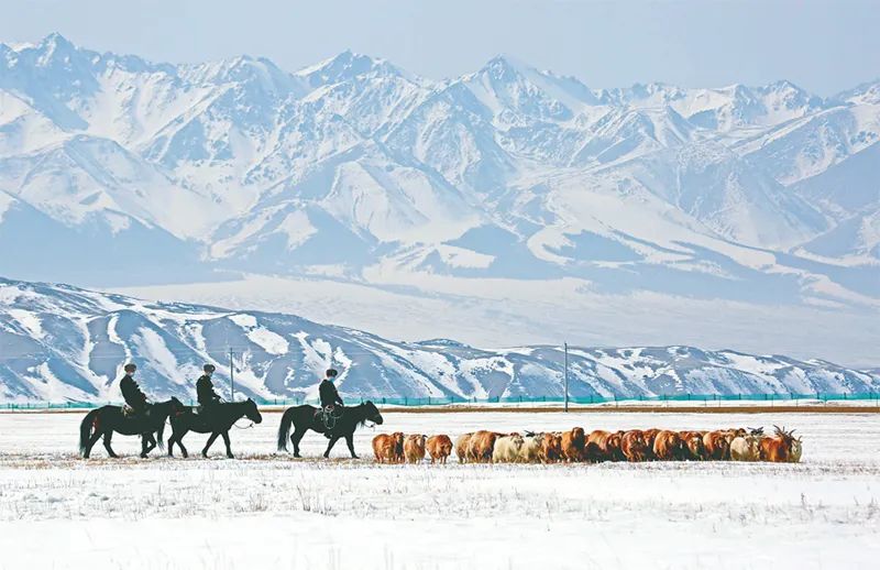 在新疆维吾尔自治区哈密市乃楞格尔草原,活跃着一支由新疆出入境边防检查总站哈密边境管理支队前山边境派出所组建的“马背服务队”。从送法上门到惠民政策宣传、从牧区巡逻到应急救援,这支服务队把“我为群众办实事”落到实处。图为“马背服务队”的民警为转场牧民开展巡逻服务。 求是图片 蔡增乐/摄