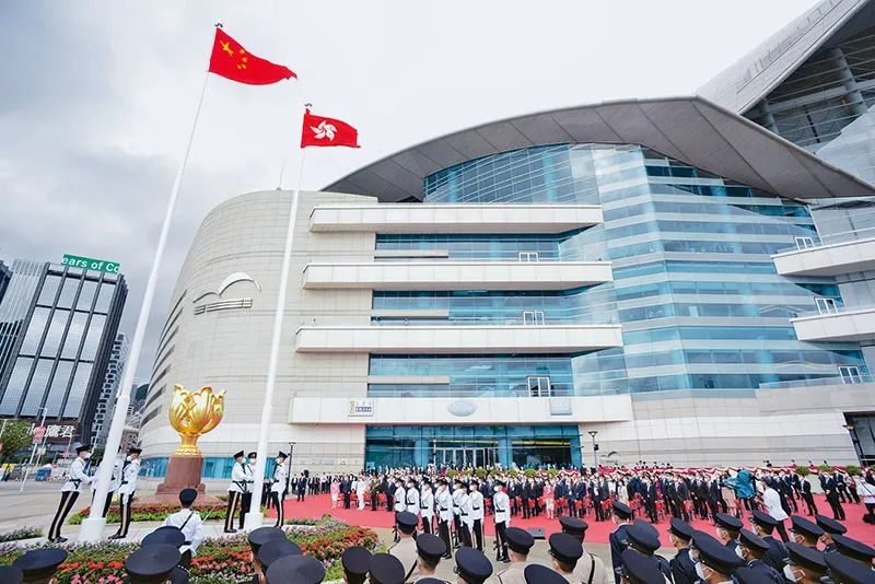 2022年7月1日,香港特别行政区政府在金紫荆广场举行升旗仪式,庆祝香港回归祖国25周年。 新华社发