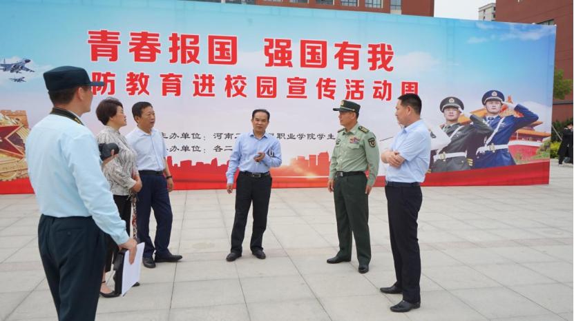 启动仪式结束后,领导们移步红旗广场,深度交流并现场指导各二级学院的国防教育及征兵宣传工作。王培森和同学们进行了深度交流,解答了同学们对征兵政策的疑惑并介绍了今年应征入伍流程。