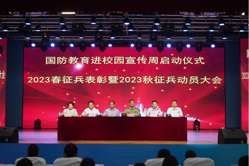 为弘扬爱国主义精神,进一步培养大学生的国防意识,赓续红色血脉,厚植国防教育情怀,5月16日下午,我校在体育馆一楼报告厅隆重举行以“青春报国 强国有我”为主题的国防教育进校园宣传活动周启动仪式。本次活动由纪委副书记、学生处负责人贾玉海主持,特邀新郑市市委常委、新郑市人民武装部上校部长马宏作动员报告。校党委委员、纪委书记王修法,新郑市武装部政工科科长王培森、全体征兵专干、辅导员及1000多名毕业生参加本次活动。