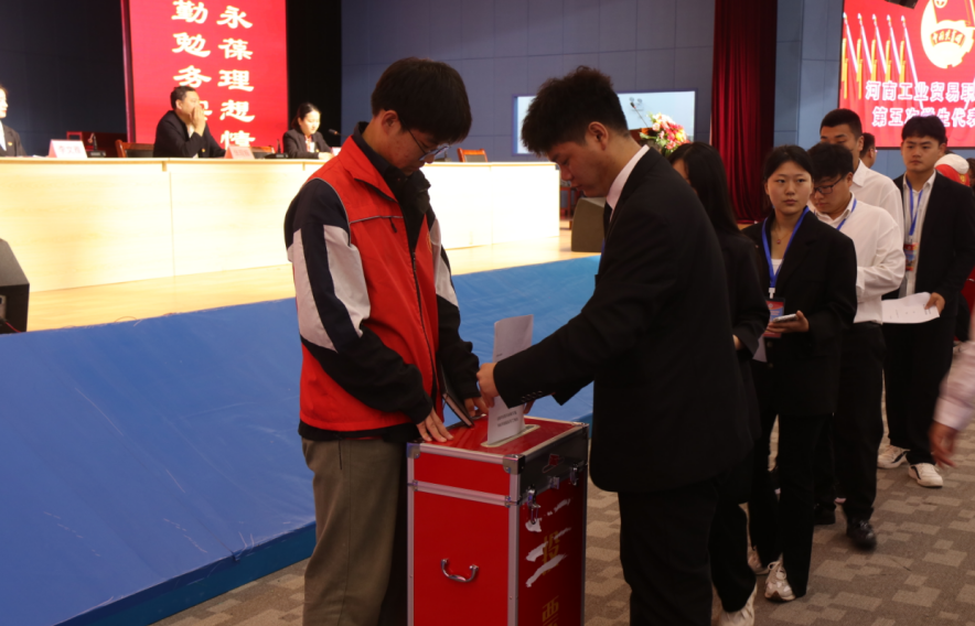 伴随着雄壮的《国际歌》,河南工业贸易职业学院第五次学生代表大会胜利闭幕。