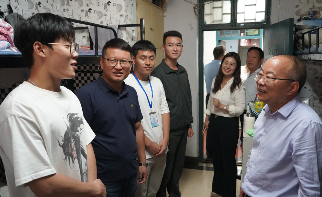 9月13日中午,校党委书记李国锋、党委副书记柴瑞帅、学生处负责人贾玉海等一行走访经济贸易学院学生宿舍,了解同学们的生活情况,为同学们送去亲切的问候和关心。