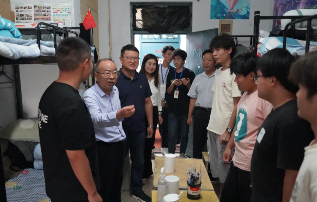 同学们对领导的探访感到惊喜,主动报告学习、生活情况。李国锋、柴瑞帅和同学们亲切交谈,详细了解同学们的返校过程及新生来校报到后的感受。李国锋对大一新生说,同学们来到新的环境,要快速融入新集体,以积极的精神面貌投入到大学的学习和生活中。要建立和谐的宿舍关系,同学们来自五湖四海,要相互包容、相互帮助、互相扶持,共同建设文明宿舍。他风趣地说,一个宿舍的男生都是好哥们,一个宿舍的女孩子都是好闺蜜,来到同一个宿舍是难得的缘分,在校是家人,毕业是好友。同学们都会心地笑了。