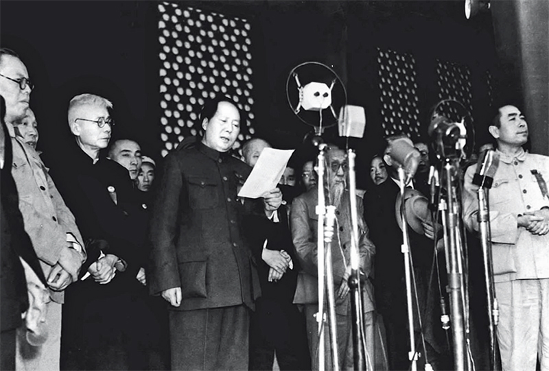 1949年10月1日下午3时,开国大典在天安门广场隆重举行。毛泽东同志庄严宣告:“中华人民共和国中央人民政府今天成立了。” 新华社发