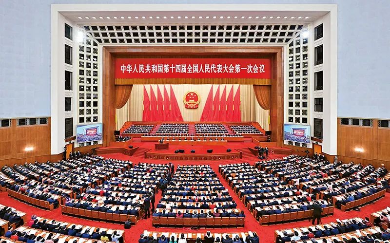 图为2023年3月5日,第十四届全国人民代表大会第一次会议在北京人民大会堂开幕。 新华社记者 翟健岚/摄