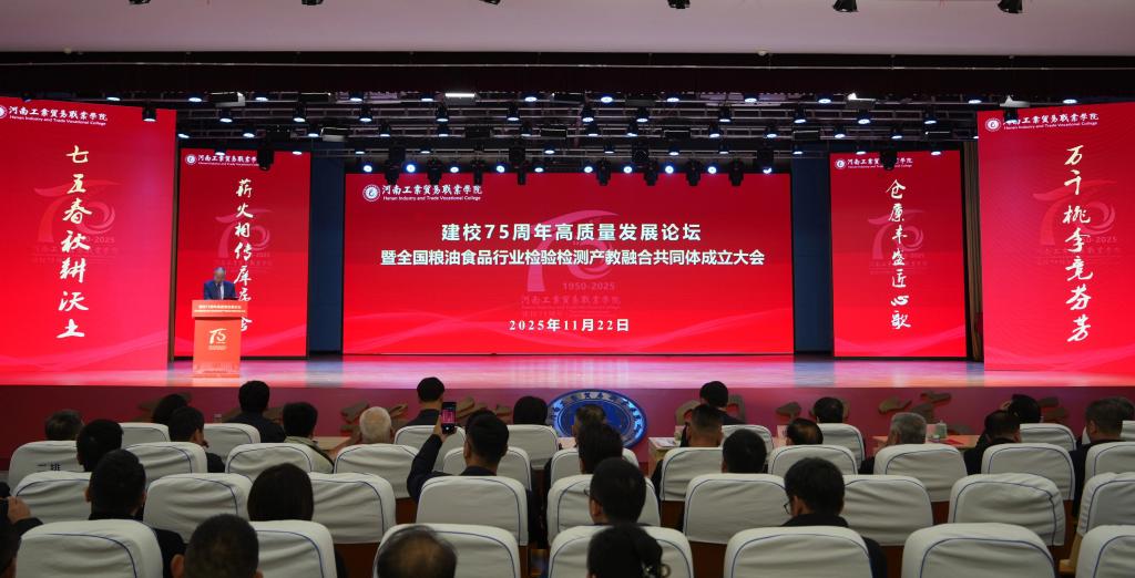 本次建校75周年高质量发展论坛暨全国粮油食品行业检验检测产教融合共同体成立大会的成功举办,标志着学校在高质量发展征程中迈出了关键一步。这既是学校厚植七十五载办学积淀、深耕粮食行业特色的主动担当,也是回应时代呼唤、服务国家粮食安全战略的生动实践,具有重要的历史意义。