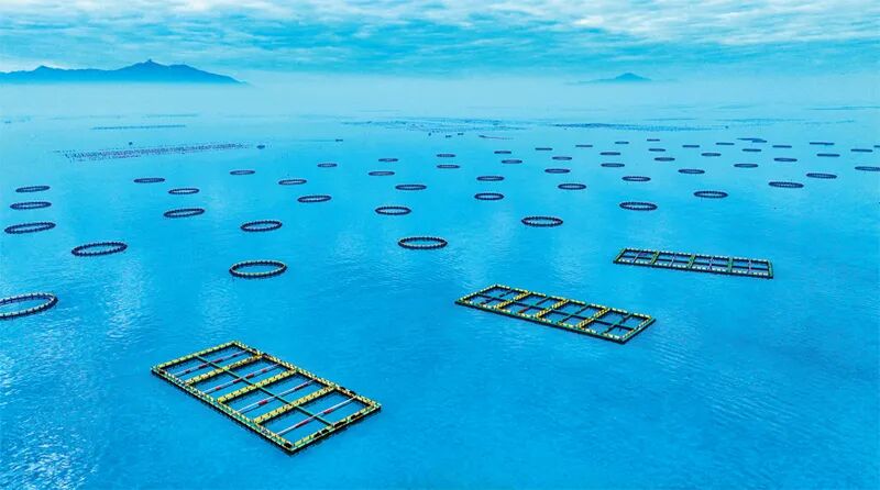 在“百千万工程”实施过程中,广东引导各地“靠山唱山歌、靠海念海经”,因地制宜发展壮大县域特色产业。潮州市饶平县探索“良种场+企业+农户”模式,大力建设现代化海洋牧场,将海洋资源优势转化为经济发展动能。图为2024年6月拍摄的饶平县重力式深水网箱养殖基地。 广东省潮州市饶平县“百千万工程”指挥部办公室供图