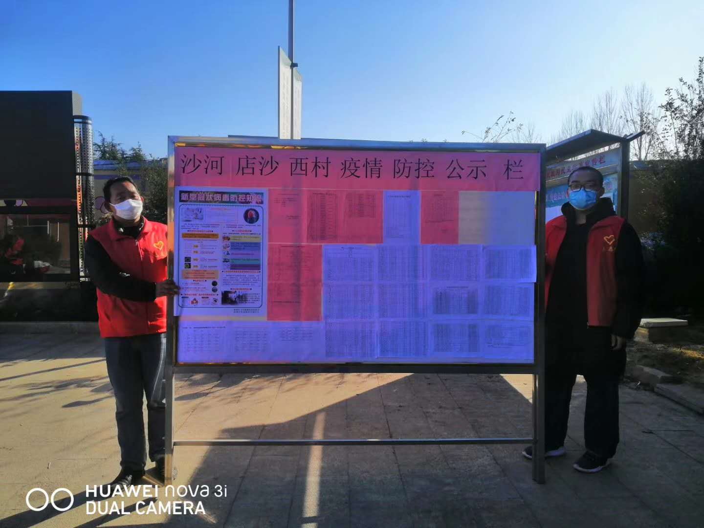 2020年2月16日开始,我和其他十一名志愿者多次在沙河店沙西村文化广场集合,分为两队扛着党旗和五星红旗在镇上宣传防疫,提高广大居民对新冠疫情防控的须知,利用小喇叭广播,到村内流动广播疫情防控知识,还对新增外来人员签订居家隔离协议,为抗击疫情工作降低疫情风险贡献我们的力量。进行巡逻,之后两人一组回到自己的值守岗位,防止外来车辆入内,检查外出人员的外出证明,防止疫情扩散。