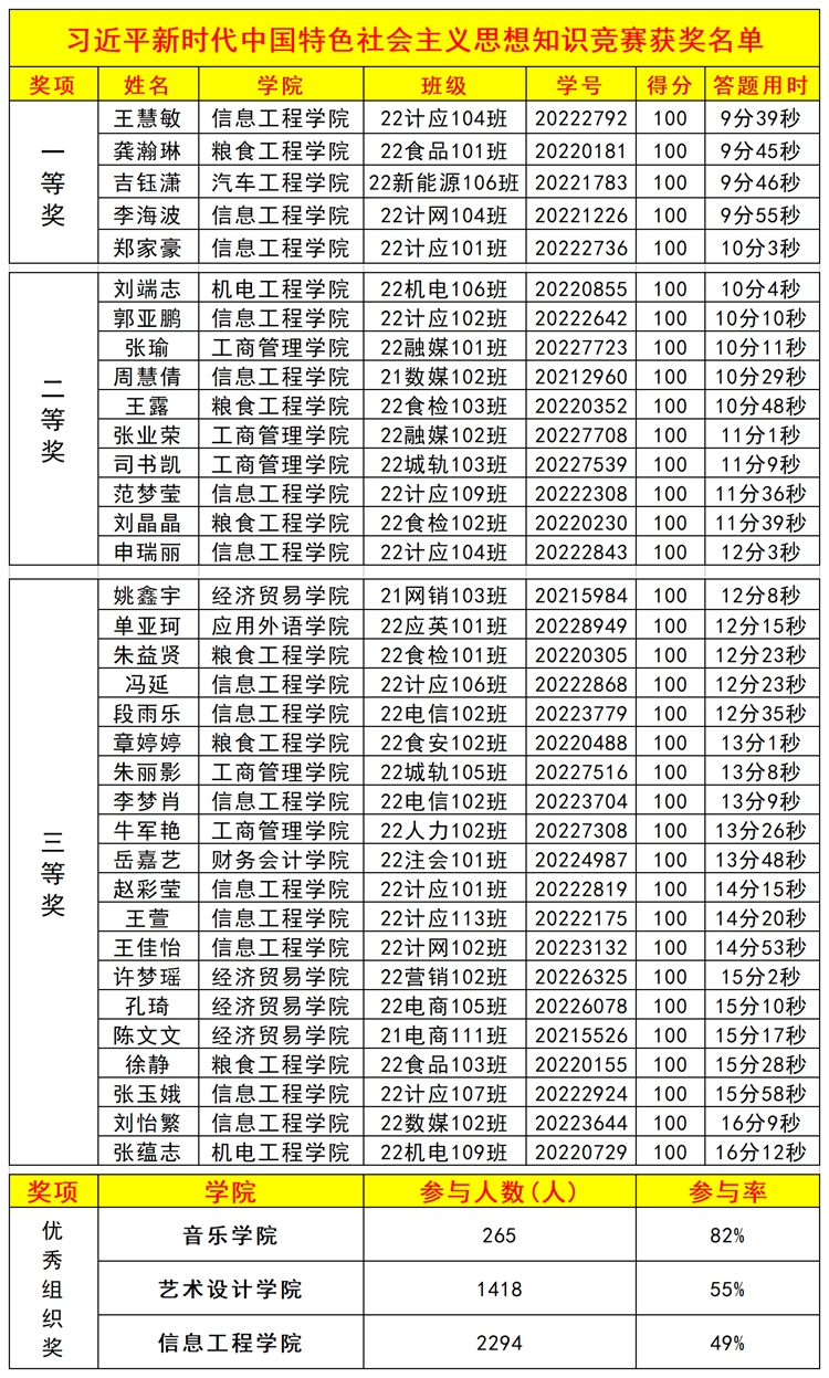 知识竞赛题型分为单项选择题、多项选择题、判断题等,总分值100分。参赛同学通过扫描二维码方式,进入答题。每次扫码,系统会从题库中随机抽取题目组卷。最终根据答题成绩和时间,综合排序评出一等奖5名,二等奖10名,三等奖20名,及优秀组织奖三个学院。