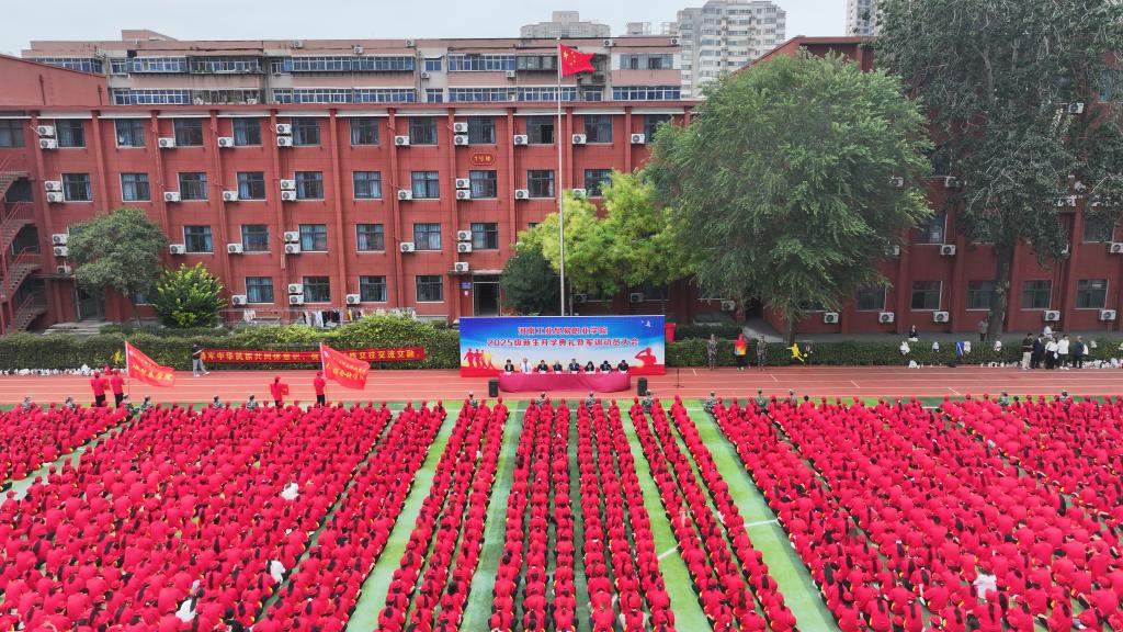校长曹利强代表学校致辞并作动员讲话。他回顾了学校的发展历程与办学成就,强调学校深厚的文化底蕴和严谨的治学氛围,希望同学们与学校发展同向同行,共同努力续写学校发展的辉煌篇章。他寄语2025级新生:一是做胸怀天下的有志青年。要树立远大理想,以实干和担当在民族复兴的伟大征程中,贡献出工贸青年朝气蓬勃的力量。二是做本领过硬的有识青年。要不断拓展知识广度、开掘思维深度、提升能力维度,在持续精进中实现自我超越。三是做可堪大用的有为青年。要葆有向上之志、行动之勇,主动担当,取得无愧于时代、无愧于青春的出色成绩。他希望同学们以严肃认真的态度,努力完成各项训练任务,发扬不怕苦、不怕累的精神,在训练中磨练坚强意志、锤炼优良作风,充分展现新时代青年昂扬向上的精神风貌。