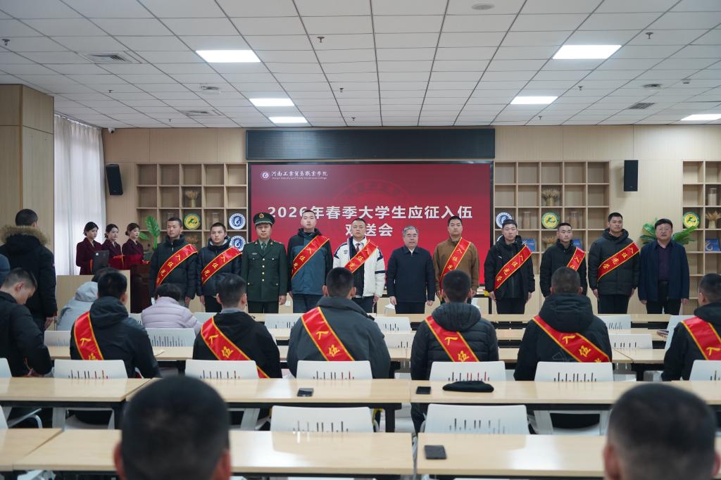 春潮涌动,戎装待发。3月13日,我校举办2026年春季大学生应征入伍欢送会,为32名即将奔赴军营的优秀学子壮行。校长曹利强出席会议,会议由副校长赵扬主持。