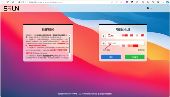 电脑上网:连上无线后,打开浏览器,若不跳转认证页面,打开浏览器输入1.1.1.1 或者10.253.2.2认证网址进行认证