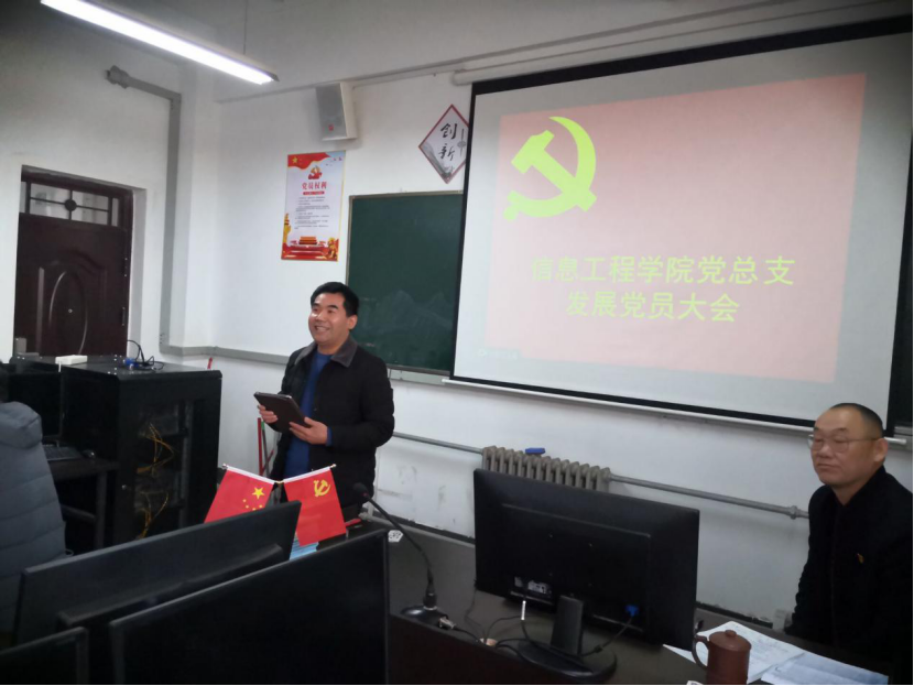 2021年3月16日,信息工程学院党总支在实训楼B201教室组织召开党员发展大会,信息工程学院全体教师党员出席会议,会议由学院党总支书记李全有同志主持。