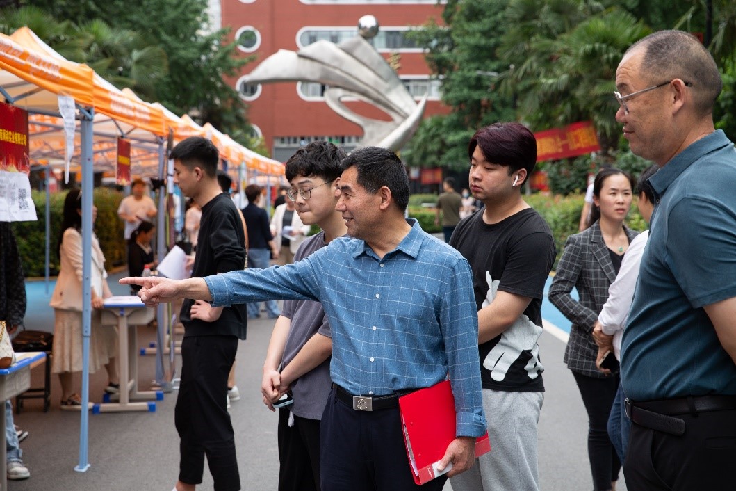 开幕式结束后,李海华、李全有深入双选会现场与用人单位及应聘毕业生进行交流。李海华仔细询问了用人单位的工作环境、招聘岗位、福利待遇等情况,李全有书记与毕业生面对面交谈,鼓励大家摆正心态,积极争取就业机会。