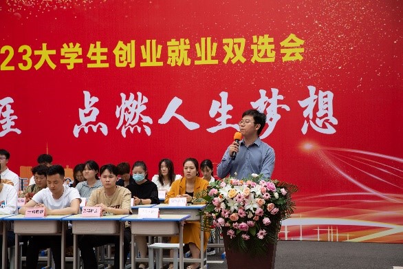 开幕式上,首先李全有介绍了参加本次创业就业双选会的企业并代表学院向前来参会的各用人单位表示热烈欢迎和感谢。他指出本次双选会举办时间正值高校6月毕业季,更加有利于学院实习、毕业生创业就业工作进一步发展。希望广大毕业生以此次双选会为契机,充分认识和定位自己,明确就业方向,同时积极鼓励用人单位提供可靠、优质的岗位需求。
