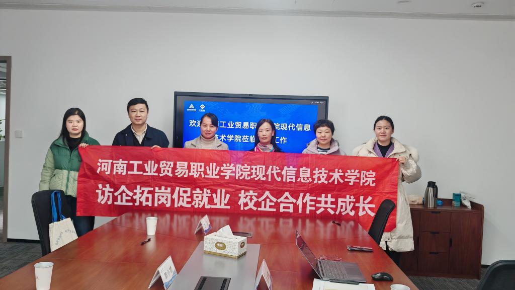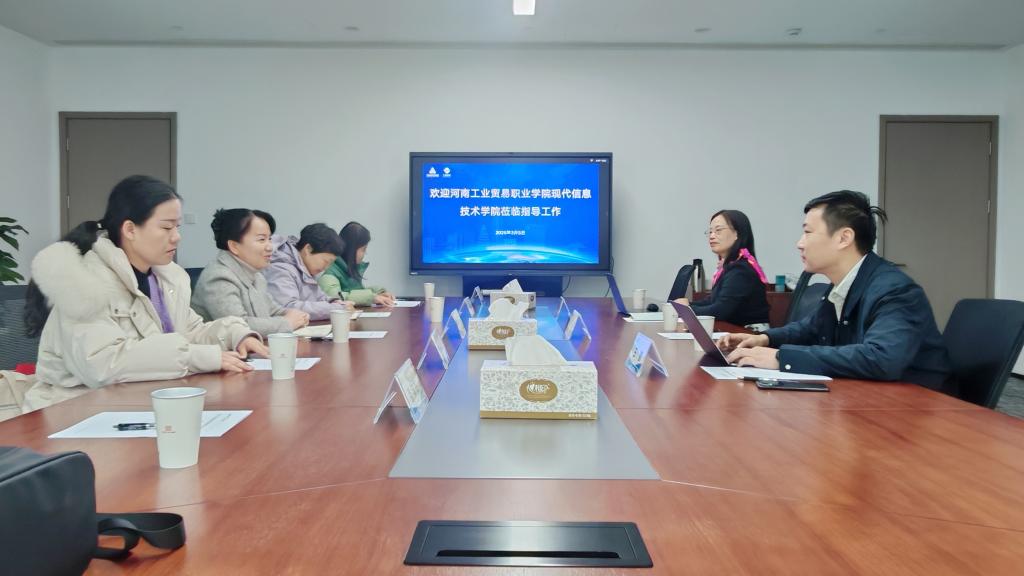 为深入推进产教融合,探索校企协同育人新路径,2026年3月5日上午,河南工业贸易职业学院现代信息技术学院党总支书记林娜、院长郭小娟、副院长代一平、大数据教研室主任王曼,以及河南省人工智能通识教育专委会常务副主任张沛杰一行,赴河南汇融数字科技有限公司(简称“汇融数科”)开展参观交流活动。汇融数科部门副主任王鑫、高级业务经理王会勤等热情接待了我校参访团队。