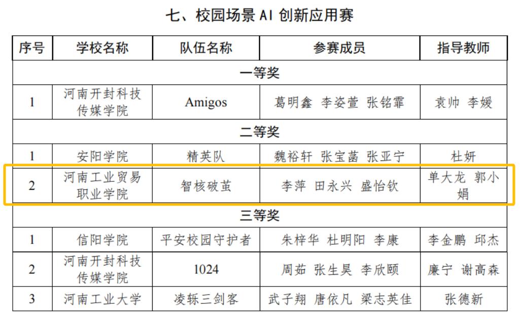 近日,2025年国际青年人工智能大赛河南省选拔赛圆满落幕。在竞争激烈的“校园场景AI创新应用赛”赛项中,现代信息技术学院单大龙、郭小娟老师带领的团队,凭借“实习全能助手”AI智能体项目一路过关斩将,在与本科院校同台竞技中脱颖而出,作为该赛道唯一高职院校斩获省赛重要奖项,并拿到全国总决赛入场券,用扎实的专业能力书写了高职学子的创新风采。