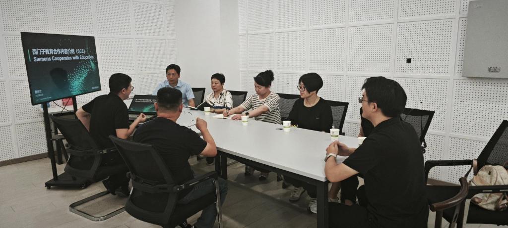 在华腾科盛智能制造实训基地,公司总经理曹彦宏系统介绍了企业作为西门子官方授权机构在智能制造执行系统(MES)和全集成自动化(TIA)技术开发方面的核心优势与教育平台成果。依托30余名西门子认证工程师组成的核心技术团队,企业服务能力覆盖控制柜设计、PLC编程与安装调试、工业自动化技术培训等全链条环节。围绕基地资源,双方就学生实习实训的合作模式、产学研协同创新的具体路径、共建产业学院等方面交换了意见。