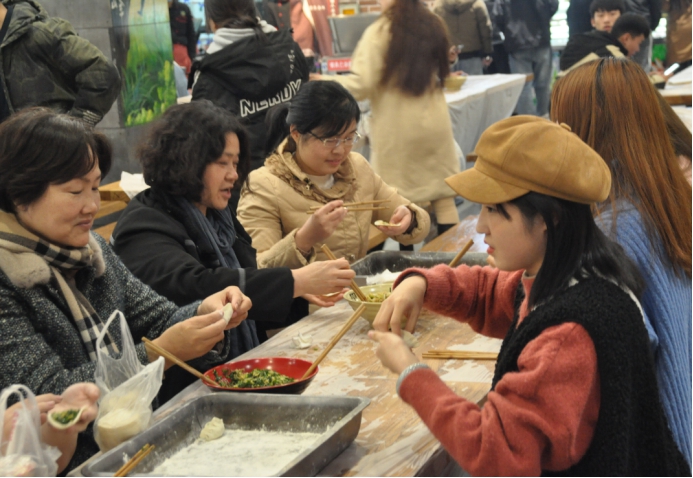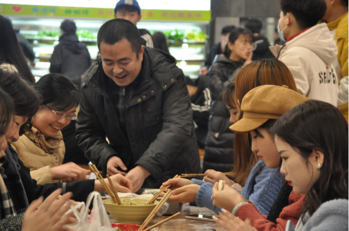 大家围桌而坐,一起调馅、包饺子。刘卫红副院长与学生们亲切交谈,询问学生的家庭、学习、生活情况。不一会,一盘盘热气腾腾的饺子端上了桌,整个餐厅充满了欢声笑语,洋溢着“家”的味道和温馨。联欢会在歌声中拉开序幕,同学们多才多艺,纷纷登台表演,吉他弹唱、军旅歌曲小合唱,精彩纷呈。刘卫红副院长一曲《城市的月光》把晚会推向了高潮。