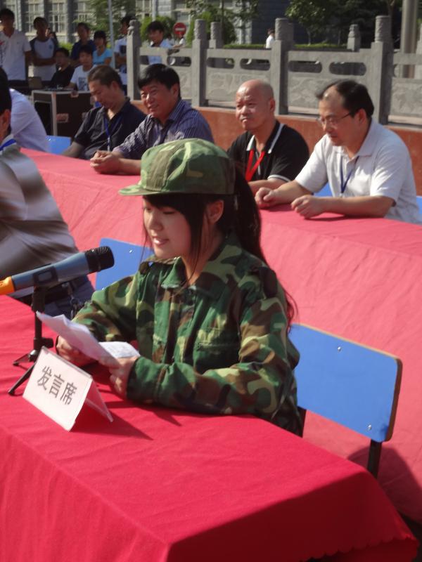 在慷慨激昂的进行曲中,3300多名新生身着迷彩服,以高昂的士气进行了分列式会操。整齐的阵容,矫健的步伐,响亮的口号,迅疾的动作……充分展示了我院2012级新生积极、自信、乐观、坚强的精神风貌,赢得了在场领导和观众阵阵热烈的掌声。会上,学生代表顾悦阳上台发言,表示将在今后的学习和生活中秉承军人的奉献精神和优秀品质,潜心学习,奋力拼搏,与全校教职工一道努力创造工贸学院新的业绩。
