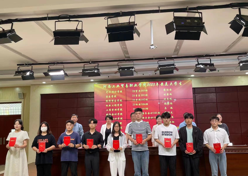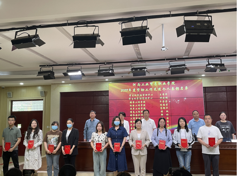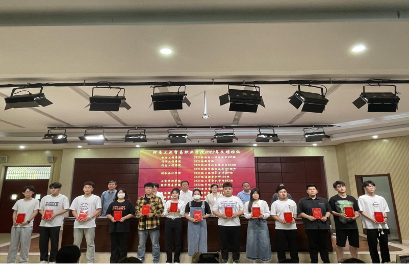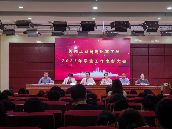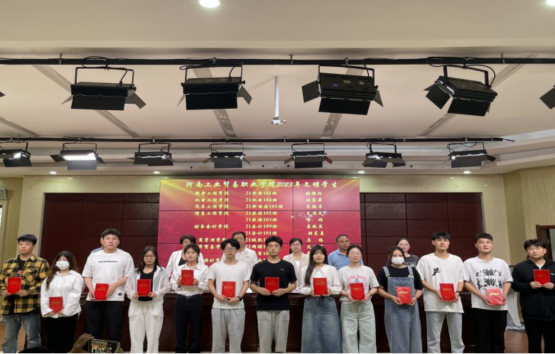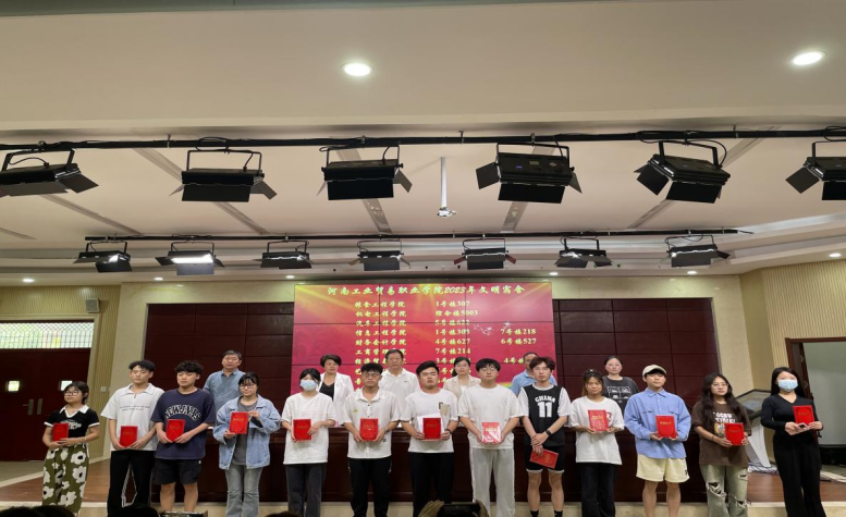 王秀华宣读了河南工业贸易职业学院2021-2022学年国家奖学金获奖学生名单。张燕斐宣读了《中共河南工业贸易职业学院委员会关于表彰2023年文明班级、文明宿舍、文明学生的决定》,边瑞瑞宣读了《中共河南工业贸易职业学院委员会关于表彰2023年最美大学生的决定》。与会领导和老师先后为获奖的集体和个人颁发荣誉证书。