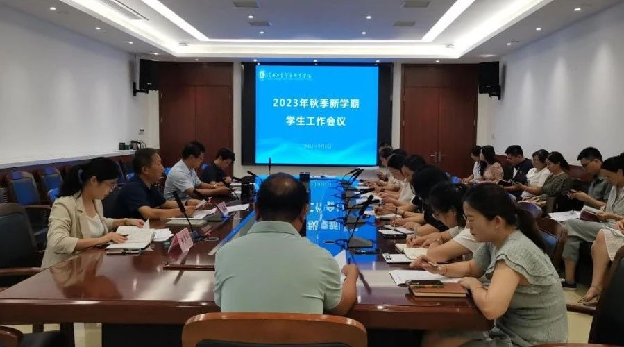 为确保新学期学生工作平稳、有序、顺利展开,9月6日上午,我校在行政楼第三会议室召开2023年秋季新学期学生工作会议。学校党委副书记柴瑞帅,纪委副书记、学生处处长贾玉海,学生处副处长王秀华,学生处副处长张燕斐,保卫处科长李伟,各学院副书记、资助专员,学生处全体老师参会。贾玉海主持会议。