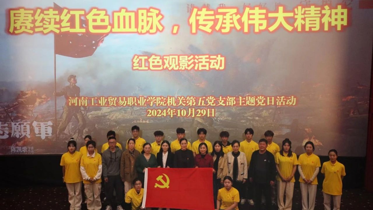 在中华人民共和国迎来75周年华诞之际,为弘扬爱国主义精神,传承红色基因,2024年10月29日,我校机关第五党支部与学生干部代表共30余人,开展以“赓续红色血脉 传承伟大精神”主题党日活动,集中观看红色影片《志愿军:存亡之战》。