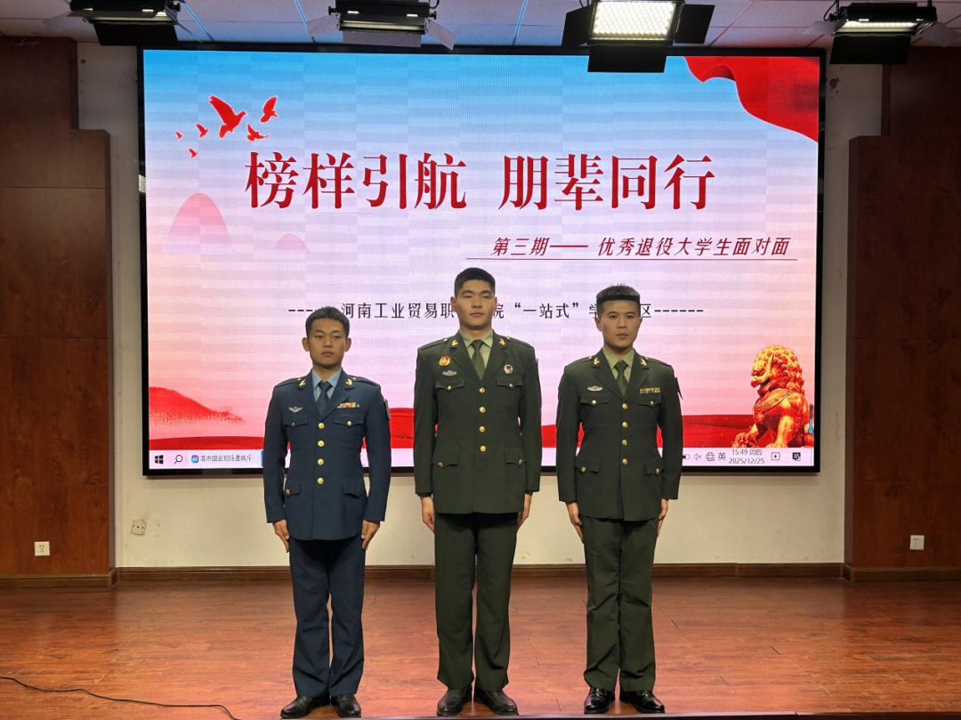 为持续搭建优秀学子交流平台,发挥榜样示范引领作用,帮助同学们明晰入伍政策、了解军营生活、规划青春道路,12月25日下午,我校在招聘会议室成功举办了“榜样引航 朋辈同行”系列活动第三期主题活动。本次活动以“以青春赴军营,以热血践初心”为主题,特邀三位优秀退伍大学生分享军旅生涯与成长感悟,活动吸引了近80余名同学积极参与。