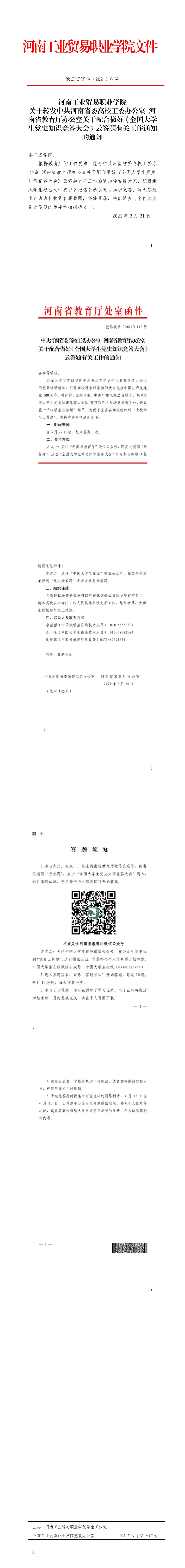 河南工业贸易职业学院关于转发中共河南省委高校工委办公室 河南省教育厅办公室关于配合做好《全国大学生党史知识竞答大会》云答题有关工作通知的通知