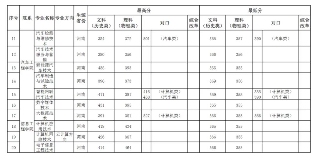 2022年河南省高职高专批集中录取控制分数线:文、理科190分。河南省我校高职高专集中录取文科最高分:437,最低分:337,理科最高分:431,最低分:341。