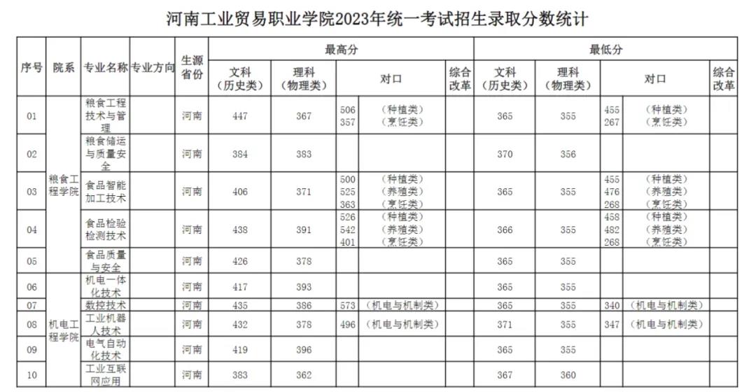 2023年河南省高职高专批集中录取控制分数线:文、理科185分。河南省我校高职高专集中录取非中外合作办学专业文科最高分:471,最低分:365,理科最高分:464,最低分:354。中外合作办学专业文科最高分:362,最低分:285;理科最高分:327,最低分:288。