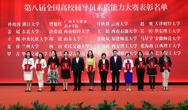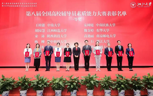 第八届全国高校辅导员素质能力大赛决赛于12月29日—30日举办。来自全国各地的81名选手经过两天角逐,最终中南大学王梓懿、中南民族大学安树庭、江西师范大学胡园慧、东华大学魏金婷、陕西科技大学宋沛、南京邮电大学高艳丽、华中科技大学杨柳、浙江大学吴行、四川邮电职业技术学院王丽英、南通大学施玮等10人获得一等奖,浙江大学孙幼波等20人获得二等奖,燕山大学陆颖等30人获得三等奖。