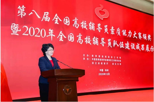 12月31日,第八届全国高校辅导员素质能力大赛颁奖暨2020年全国高校辅导员队伍建设成果展示在浙江大学举行。教育部党组成员、副部长翁铁慧为第十二届高校辅导员年度人物及第八届全国辅导员素质能力大赛一等奖获得者颁发证书并讲话。浙江大学党委书记任少波致辞。