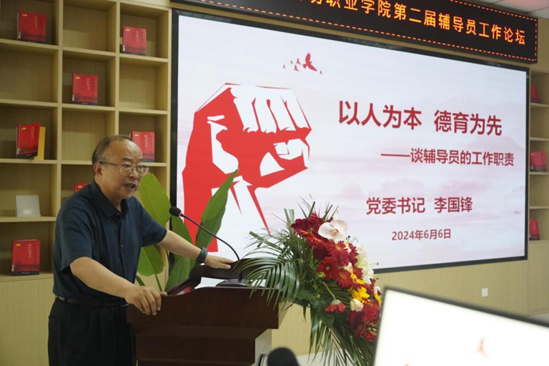李国锋以“以人为本,德育为先——谈辅导员的工作职责”为题作了报告。他指出,一个合格的辅导员,工作的核心元素是德;工作过程影像是忙;心路历程是酸辣苦咸甜,五味俱全;人生收获是人格好、胸怀宽、幸福感强。他强调,辅导员要加强师德修养,德才兼备,真诚对待每一位学生,担当作为,砥砺前行。