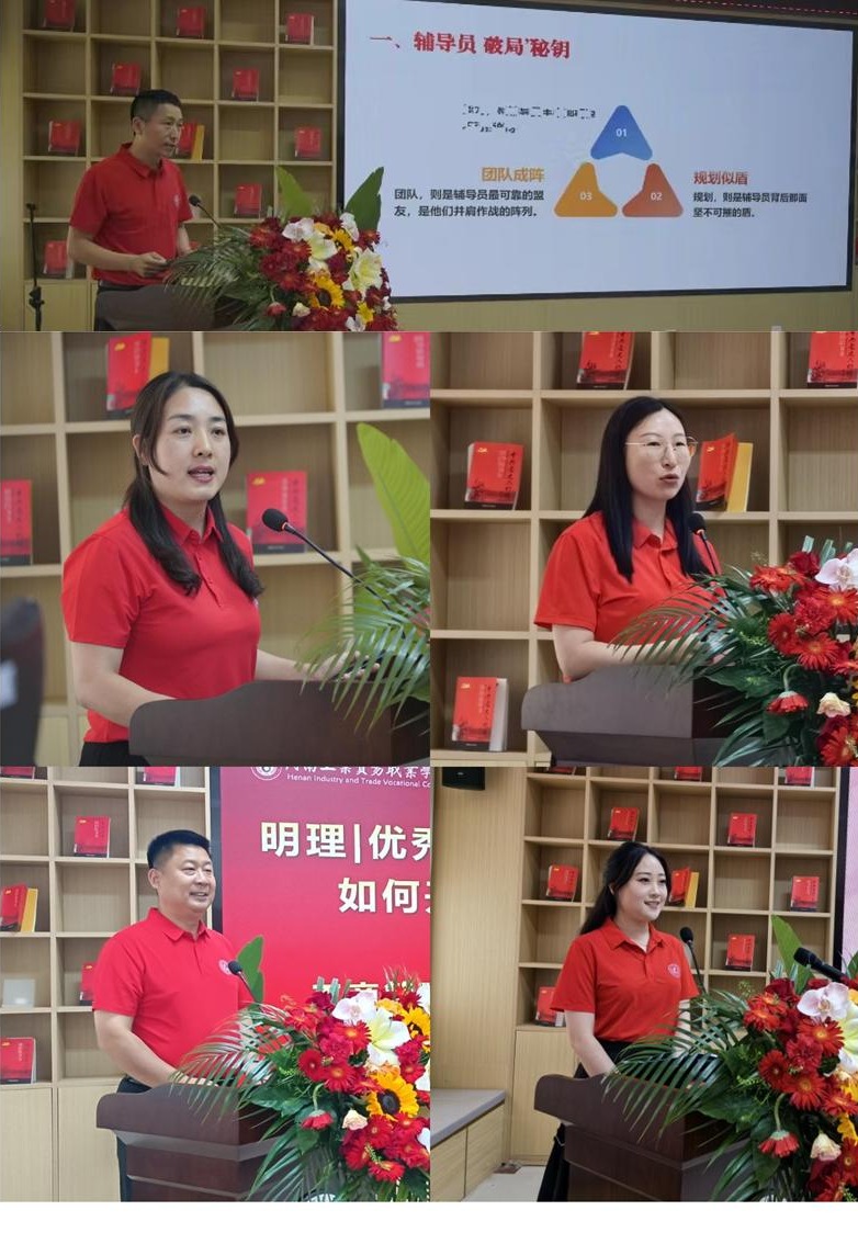 赵连灯、陈冰赛、许晴晴、谢兆山、李鑫分别以“辅导员‘破局’三要素:能力、规划、团队”“优秀辅导员说:‘五育并举’心理育人工作法在实际工作中的运用”“基于职业规划与就业指导的高校辅导员工作室建设路径初探”“优秀辅导员说:高校辅导员如何开展好谈心谈话工作”“新质生产力视域下历史主动精神涵育青年责任感的创新路径研究---我的参赛之路”为题发言。