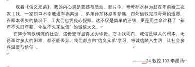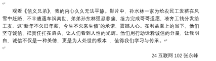 笔尖绘诚信,在本次观影活动后,大家用文字抒发对诚信的理解,讲述发生在自己身边的诚信故事,畅谈诚信对个人成长的重要意义。一篇篇感想,或真挚感人,或发人深省。这些作品体现出他们对诚信的深刻思考与践行决心。
