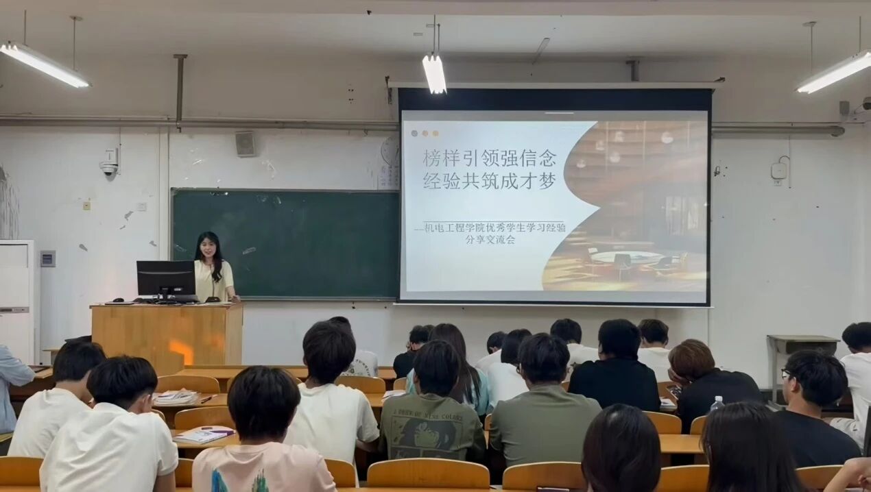 为充分发挥榜样引领作用,激励学生汲取经验、奋发向上,机电工程学院6月5日在3106教室组织开展优秀学生学习经验分享交流会。活动邀请张雪、张宗安、李东艺三位优秀学生代表分享成长故事。在校学生代表齐聚一堂,共同聆听优秀学生的成长故事与学习心得。