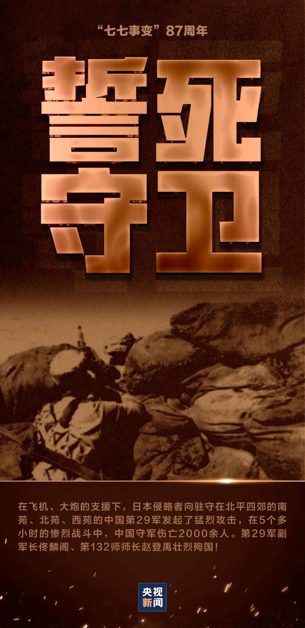 87年前的今天永不敢忘!1937年7月7日,卢沟桥畔一声枪响,拉开全民族抗战的序幕。中华儿女浴血奋战、救亡图存,谱写了勠力同心、以弱胜强的雄浑史诗。