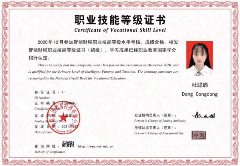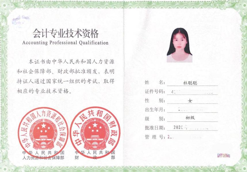 ◆ 2020年获得国家励志奖学金2020年考取初级会计证书2021年获得智能财税职业技能初级证书