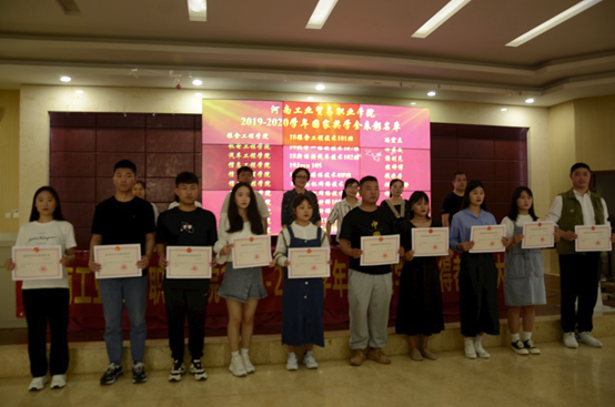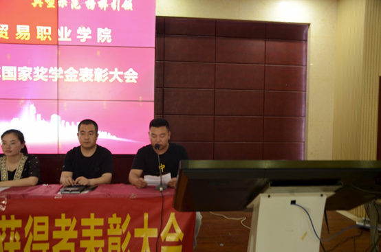 学生资助管理中心主任边瑞瑞宣读了我校2019-2020学年国家奖学金获得者名单。学生处全体教师为获奖学生颁发了荣誉证书。