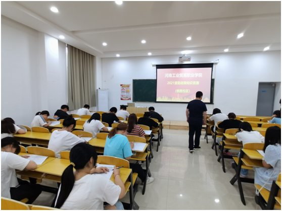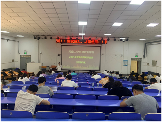 为宣传国家资助政策及让广大学生了解我校相关资助政策,切实提高学生的诚信意识和观念,推动我校国家资助工作持续、健康发展,根据《河南工业贸易职业学院2021年学生资助诚信教育主题系列活动方案》以及《河南工业贸易职业学院2021年资助政策知识竞赛活动方案》,我校于2121年6月17日中午分别在龙湖校区和优胜校区举办了2021年资助政策知识竞赛校级决赛,高职和中职共100名学生参加了此次角逐,其中获得助学贷款、奖助学金的学生有70余名。