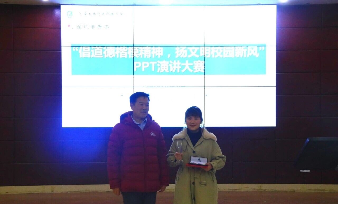 为提升我院大学生综合素质,增强大学生诚信意识。2018年12月13日,学院学生资助管理中心组织院学生会学习部在我院3号教学楼321教室举办了“倡道德楷模精神,扬文明校园新风”ppt演讲大赛总决赛。学生工作处穆永恩处长,院学生会主席团,院学生会各部部长,担任本次大赛的评委嘉宾。