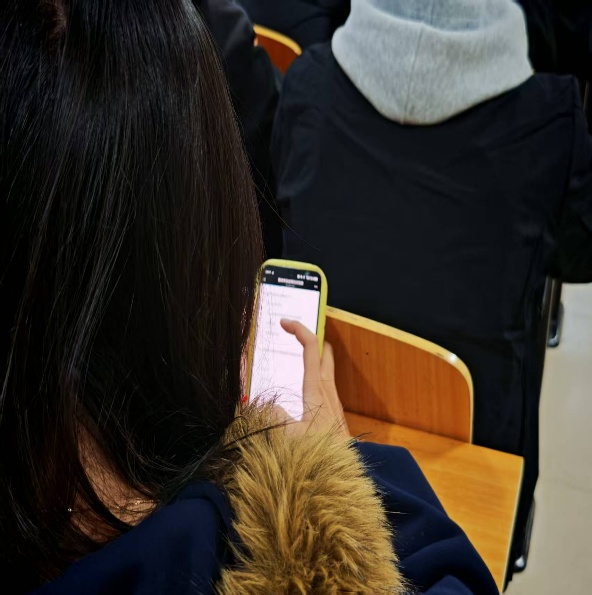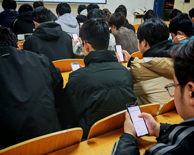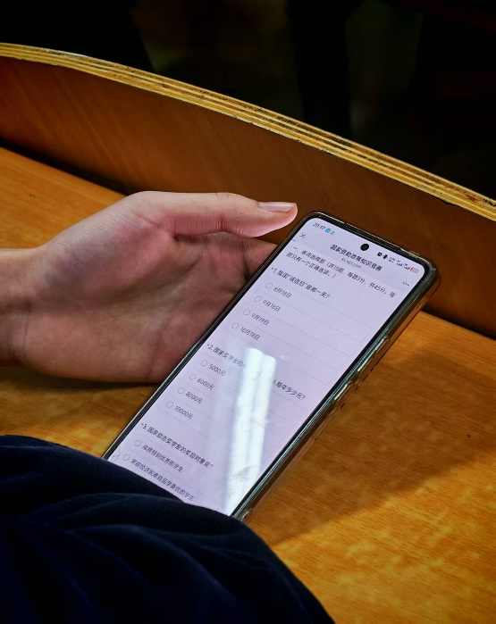 本次竞赛采用线上答题的形式,在微信小程序“问卷星”上同学们以极佳状态展现了学习成果与青春风貌。屏幕两端,大家自觉端正坐姿,眼神专注而坚定,指尖在键盘上有序敲击,用严谨态度对待每一道考题。