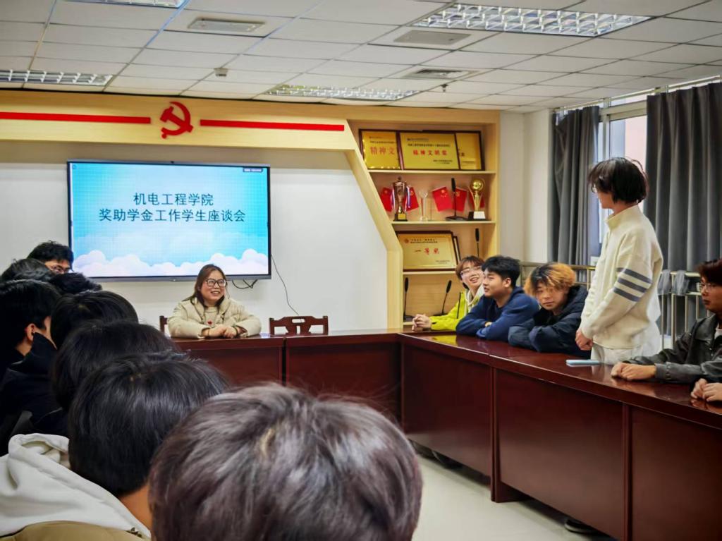 为精准掌握学生对学校及学院评奖助学金工作的真实反馈,广泛收集优化建议,进一步提升资助工作的公平性、透明度与实效性,机电工程学院于11月17日组织召开学生评奖助学金工作座谈会。本次会议邀请不同年级、不同专业的学生代表参会,围绕评奖助学金政策宣传、评审流程、结果公示、异议处理及后续帮扶等核心议题展开深入交流。现将活动情况总结如下: