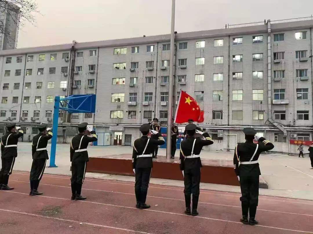 在校国旗护卫队迈着铿锵有力的步伐护卫着国旗出现的那一刻,全体师生心中对国旗的敬意油然而生。伴随着雄壮豪迈的国歌,在全体师生的注目之下,五星红旗徐徐升起。