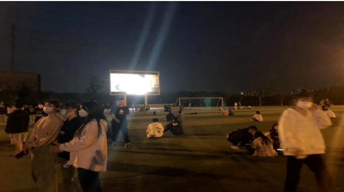 为营造健康文明的校园文化氛围,缓解疫情期间学生的焦虑情绪,赓续红色血脉、传承红色基因,信息工程学院为响应学校喜迎二十大、永远跟党走、奋进新征程的号召,在2022年4月22日晚上7:30分组织学生在操场进行了红色观影活动,以丰富防疫期间学生的课余文化生活,此次观看的影片为《建国大业》。