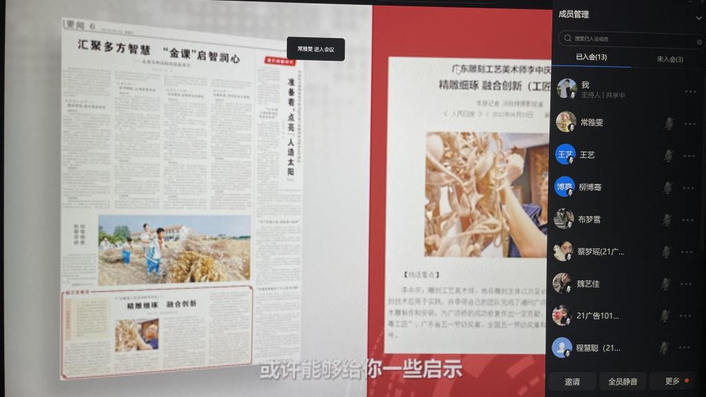 近日,教育部与人民网联合开展“悦读伴我成长”职教学生读党报活动,旨在全面贯彻全国职业教育大会和中共中央办公厅、国务院办公厅《关于推动现代职业教育高质量发展的意见》精神,深入推进学校思想政治工作,建立“大思政课”工作新格局,加大新思想引领力度。6月30日下午,艺术设计学院结合实际,以线上为主积极组织学生观看教育部举办的“悦读伴我成长”职教学生读党报活动。